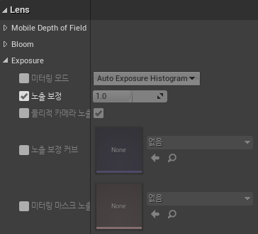 PostProcessVolume의 Exposure의 노출 보정(Auto Exposure Bias)를 활성화시켜준다.