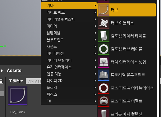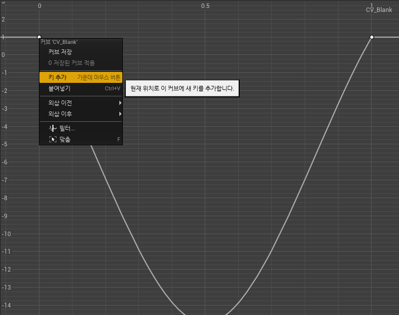 에디터에서 CV_Blank 라는 이름으로 커브를 생성한 후, 키 추가로 내가 원하는 커브를 만들어준다.