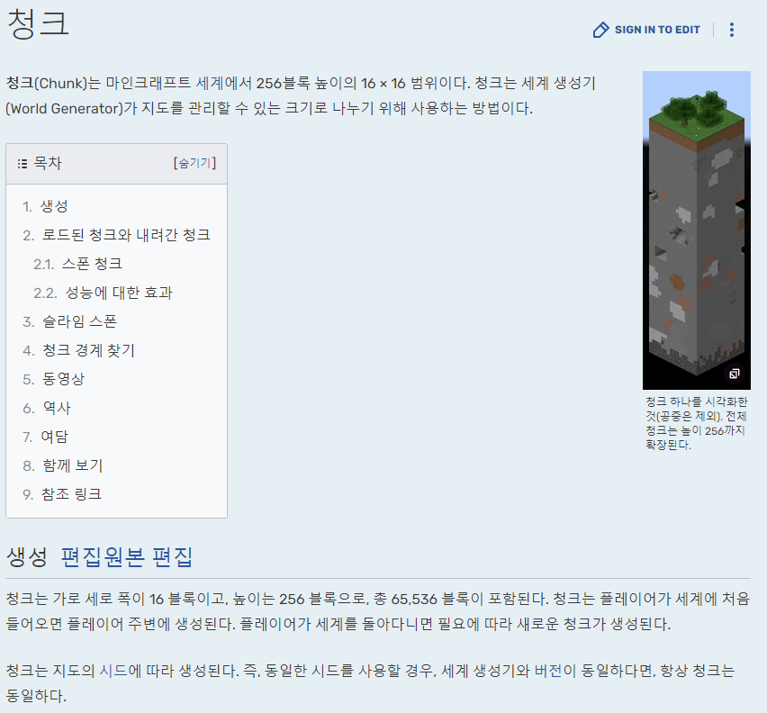 이는 마인크래프트라는 게임에서도 활용되는 개념인데 플레이어의 주변 일정 거리만큼 있는 정해진 크기의 청크, 즉 하나의 큰 블럭만 스폰시켜서 보여주는 것이다.