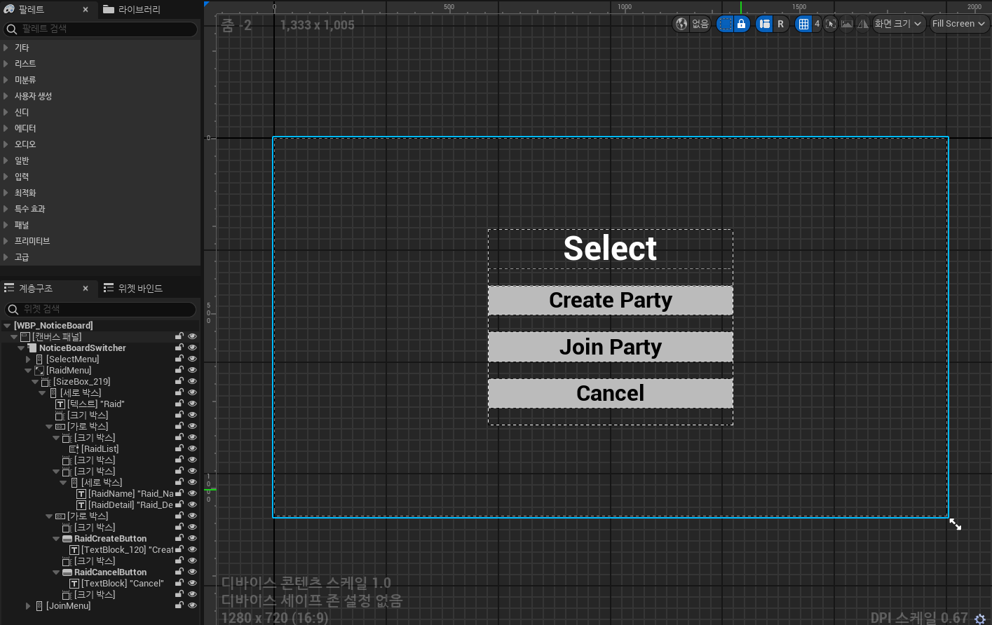 WidgetSwitcher라는 기능을 이용하여 다음과 같이 UI를 구성하였다.
