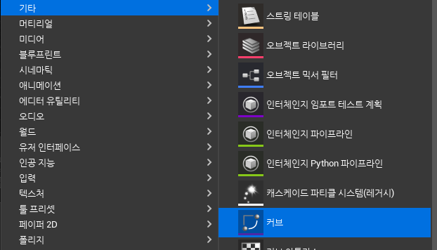 이전 글과 같이 기타 - 커브를 이용해 커브를 만들어줄 것이다.