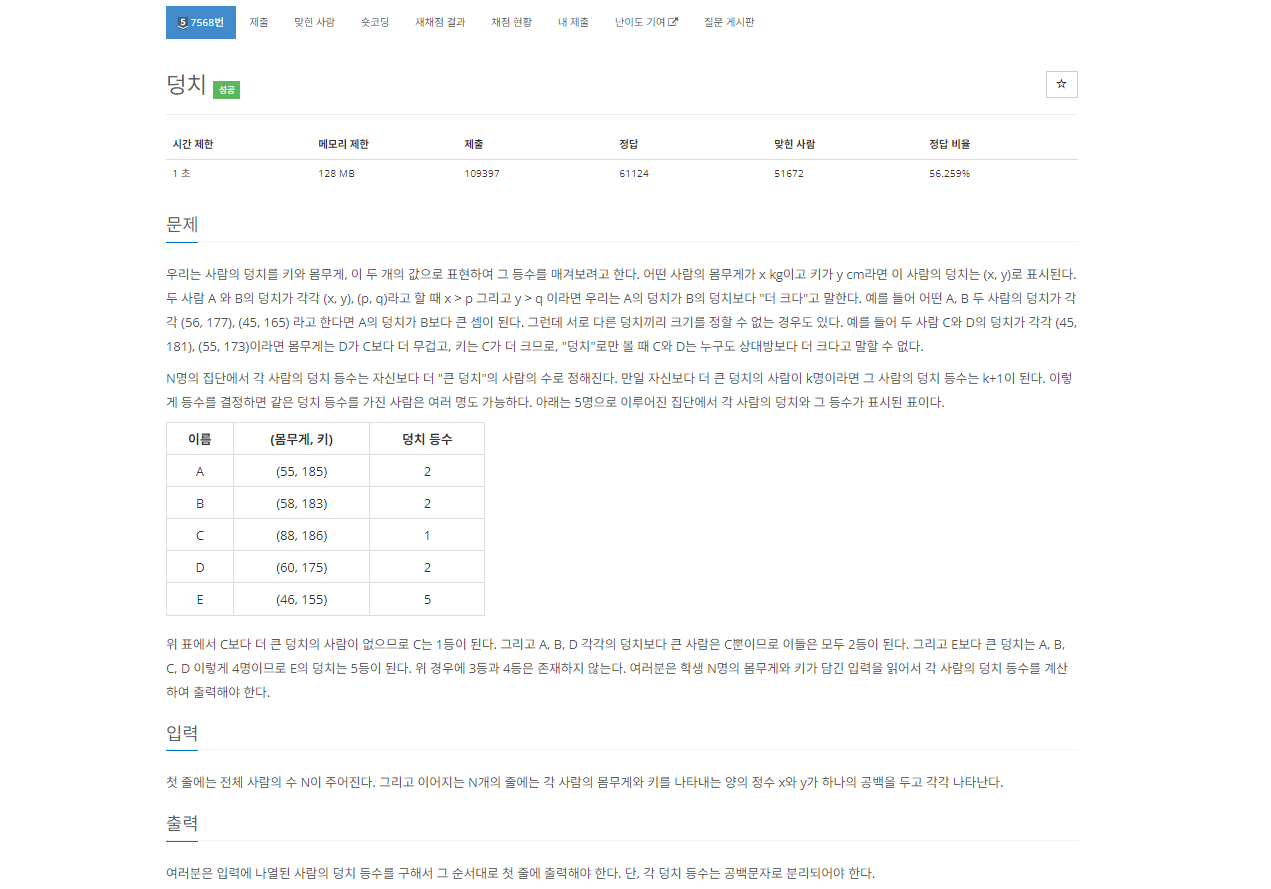 https://www.acmicpc.net/problem/7568
