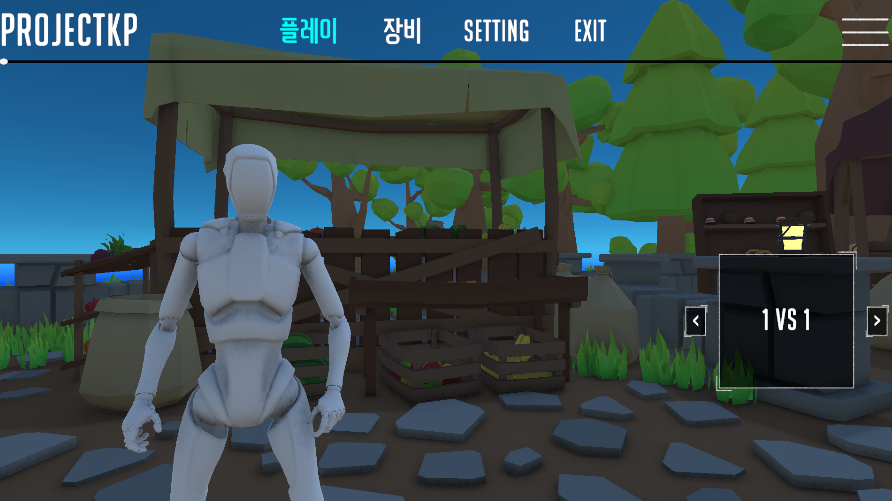 위에 Setting과 Exit는 공간을 채우기 위한 용도이고, 플레이 와 장비 탭으로만 구현을 하였다.